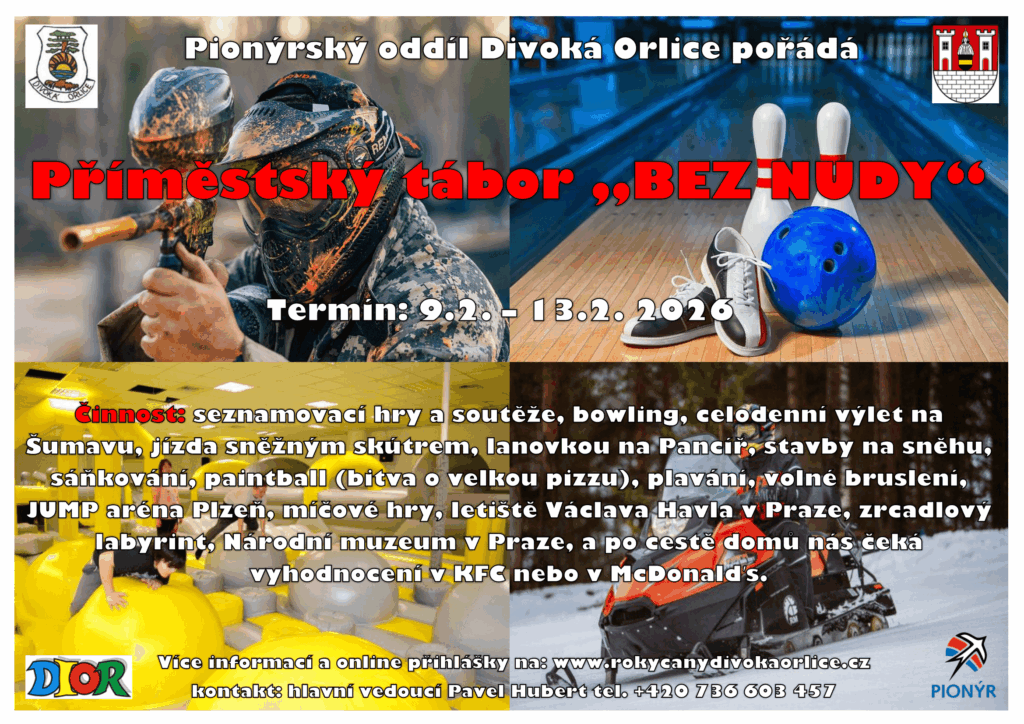 Sraz dětí je vždy v 7:45. Děti po skončení programu mohou chodit domů samy, ale pouze s písemným souhlasem rodičů. Vaše děti se po celých 5 dní nudit nebudou, protože chceme, aby si děti prázdniny naplno užily. Oblečení dávejte dětem starší, aby si je mohly umazat tak, aby na sebe nemusely dávat velký pozor.. Na některé výlety i náhradní oblečení boty atd., tak aby se mohly děti převléknout do suchého a teplého. Kdyby Vaše dítě mělo nějaký